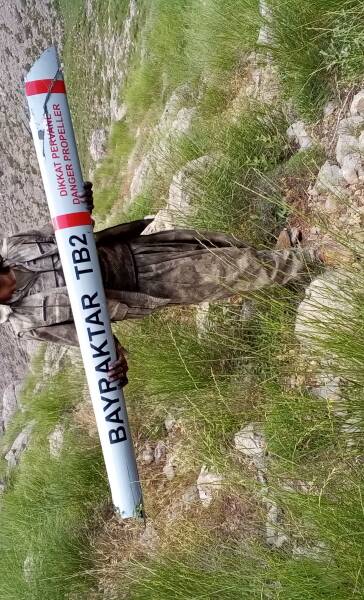 An armed drone of Bayraktar TB2 type crashed in the Qandil region in southern Kurdistan (northern Iraq). According to guerrilla fighters in the region, the Turkish combat drone lost control on the evening of 14 June and hit the ground in the Girê Savaş area. The debris was collected by the guerrillas. One of the drone parts has the inscription T175 on it.